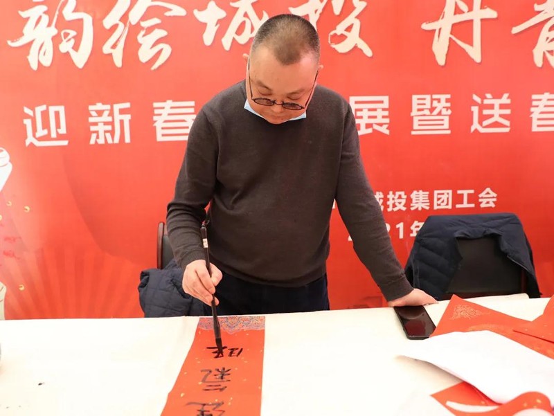 集團(tuán)公司工會(huì)特邀四川省書協(xié)、成都市書協(xié)書法大家劉健、李家德、王興國(guó)和代明道到活動(dòng)現(xiàn)場(chǎng)揮毫潑墨,為城投員工書寫美好心愿。