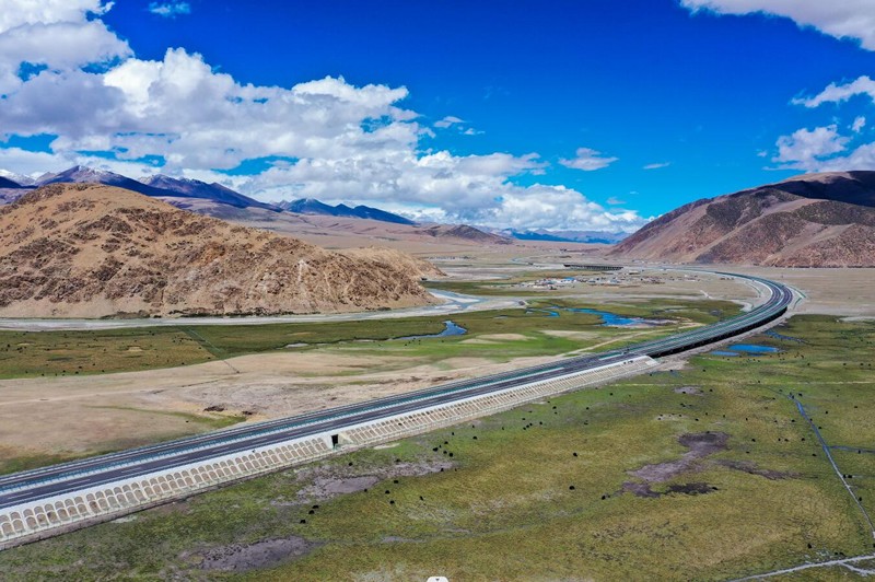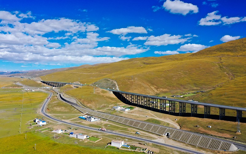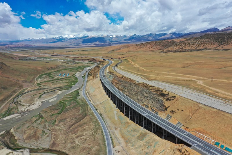 G6京藏高速公路那曲至羊八井段全長227公里,是國家高速公路網的重要組成部分,是西藏自治區(qū)重大民生工程之一。由中國中鐵所屬中鐵城投融資建設,中鐵一局、二局、三局、九局、十局具體施工的那曲至羊八井段三標,全長78公里,采用雙向四車道高速公路標準建設,設計行車時速120公里。線路位于藏北高原念青唐古拉山腳,起于拉薩市當雄縣公塘鄉(xiāng),止于當雄縣羊八井鎮(zhèn)桑巴薩村,平均海拔4400米。項目自2018年6月1日開工建設,于2021年5月29日全面完工。