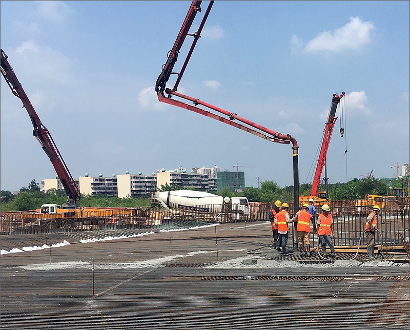 2013年10月開工以來(lái),中鐵二局六公司項(xiàng)目部為方便施工,將停車場(chǎng)劃分為軌行區(qū)、咽喉區(qū)、運(yùn)用庫(kù)區(qū)等4個(gè)區(qū)塊,克服跨越3個(gè)雨季對(duì)深基坑施工帶來(lái)的安全風(fēng)險(xiǎn)及多工序交叉作業(yè)難題,克服征地拆遷、方案調(diào)整的影響,先后投入近千臺(tái)套各類機(jī)械設(shè)備,組織2000余人次投入到施工中。在難度極大的寬600米、長(zhǎng)180米,平均深度18米的深基坑開挖中,引入BIM建模技術(shù),在大面積深基坑開挖邊坡控制圍護(hù)中,大力神支架取代傳統(tǒng)鋼管式支架、超高單側(cè)墻模板等新技術(shù)的運(yùn)用,成為施工生產(chǎn)強(qiáng)勁的“助推劑”,安全完成了200余萬(wàn)立方米土石方,施工各類樁基6000余根,使用鋼筋9萬(wàn)余噸,澆注混凝土40余萬(wàn)立方米。在中鐵城投集團(tuán)組織的“踐行承諾,樹譽(yù)天府”勞動(dòng)競(jìng)賽中,多次獲得一等獎(jiǎng)。項(xiàng)目部還獲得了中國(guó)中鐵股份公司授予的安標(biāo)工地、工程項(xiàng)目文化示范點(diǎn)、節(jié)能減排示范工地、紅旗項(xiàng)目部等稱號(hào),被全國(guó)建筑業(yè)協(xié)會(huì)評(píng)為綠色示范工程。