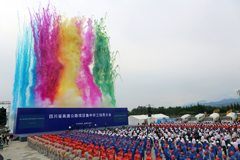 9月19日上午,四川高速公路項目集中開工動員大會在中國中鐵BOT項目——成都經(jīng)濟區(qū)環(huán)線高速公路蒲江至都江堰段工地舉行。