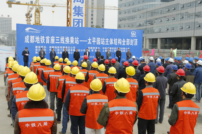 太平園站是成都地鐵在建首座三線換乘站,也是在建規(guī)模最大的車站,施工工藝復雜,交叉環(huán)節(jié)多,交通疏解難,管線遷改量大,是3號線、7號線、10號線建設的重點控制性工程。中鐵八局城軌公司項目部超常規(guī)投入,周密協(xié)調,攻堅克難,主體結構于10月30日封頂。