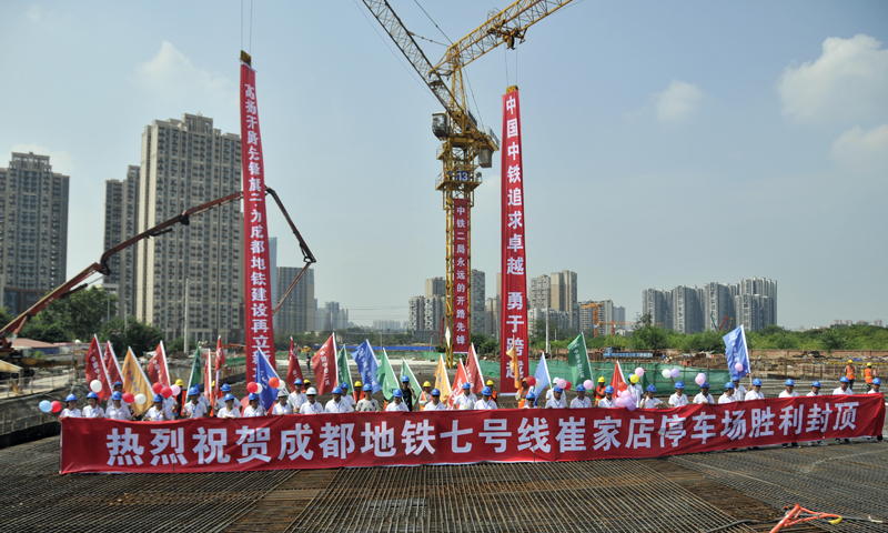 地鐵7號線崔家店停車場主體,是成都地鐵首個全地下停車場,工程規(guī)模是亞洲同類型工程中體量最大的項目。中鐵二局六公司項目部克服克服膨脹土地區(qū)深基坑作業(yè)、結構超高層高大模板施工、超大基坑防洪防汛、大體積混凝土施工質量控制、超大規(guī)模施工組織等困難,8月6日順利實現(xiàn)主體結構封頂。