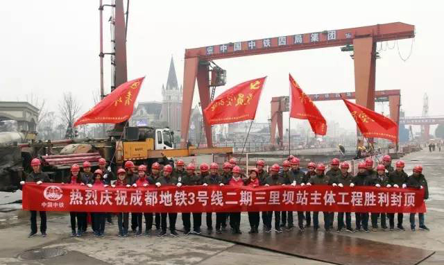 12月14日,中鐵四局成都地鐵3號線二三期工程土建2標項目部施工的三里壩站提前30天封頂。