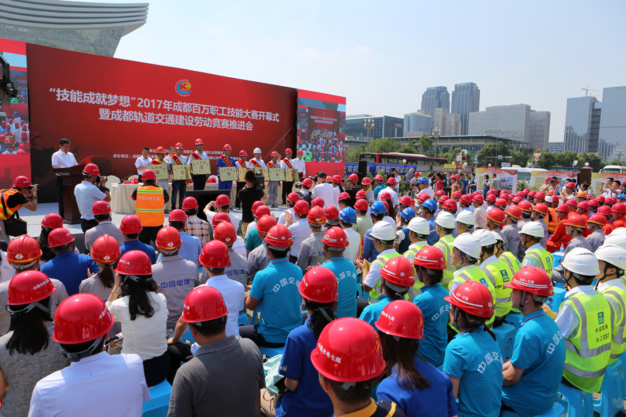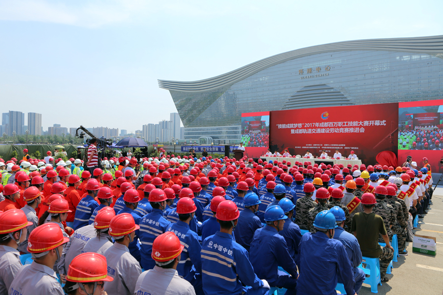 5月27日,成都市總工會(huì)舉辦“技能成就夢(mèng)想”2017年成都百萬(wàn)職工技能大賽開幕式暨成都軌道交通建設(shè)勞動(dòng)競(jìng)賽推進(jìn)會(huì),動(dòng)員地鐵建設(shè)者為努力打造西部交通樞紐,奮力實(shí)現(xiàn)“650+”任務(wù)目標(biāo),為建設(shè)全面體現(xiàn)新發(fā)展理念的國(guó)家中心城市再立新功。