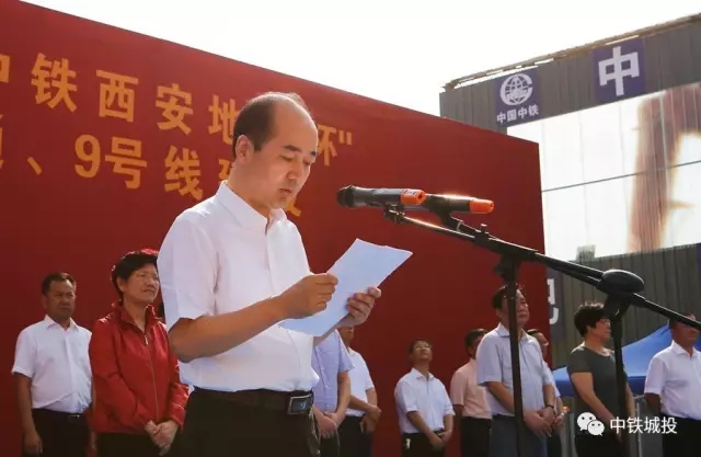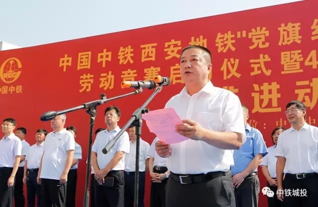 中國(guó)中鐵組織部部長(zhǎng)丁榮昌宣讀中國(guó)中鐵西安地鐵黨旗紅活動(dòng)方案