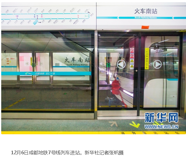 12月6日,中國中鐵在西部地區(qū)首條一次性建成、一次性移交、一次性運營的城市地鐵——成都地鐵7號線開通試運營,標志著成都地鐵邁入“井+環(huán)”線網(wǎng)時代。新華社發(fā)了消息,眾多媒體轉(zhuǎn)載。