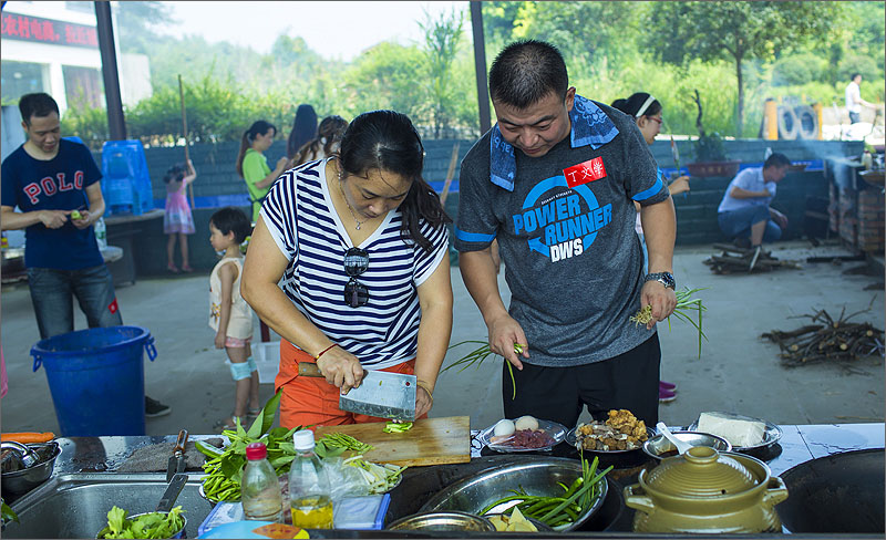 當(dāng)日,參與者都佩戴了自己的專屬“名牌”,活動在家庭相互自我介紹中拉卡序幕,在職工志愿者和農(nóng)莊工作人員引導(dǎo)下,小朋友們參觀了山林中的養(yǎng)殖場,動手喂養(yǎng)了水牛、山羊、巴馬香豬、跑山雞等動物,小朋友們興奮得歡呼雀躍。小朋友們還與家長一道采摘有機蔬菜,并分組進行廚藝比拼,他們分工協(xié)作,討論菜譜、生火做飯、切菜炒菜,一個個忙的不亦樂乎,有的小朋友還自己動手嘗試了炒菜。最終第二組和第四組分獲“最好吃的菜”和“最好看的菜”。